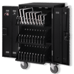 The internal design of the C30u+ prioritizes device safety and organization. It features three slide-out shelves for easy device access and adjustable dividers that can be customized to fit various device thicknesses, including those in ruggedized cases. The smart LED indicators on the front of the cart allow users to monitor the charging status of each device at a glance (Charging, Fully Charged, or Syncing). With its superior mobility and compact footprint, the C30u+ is a versatile, future-ready charging station that streamlines the maintenance of your mobile ecosystem.